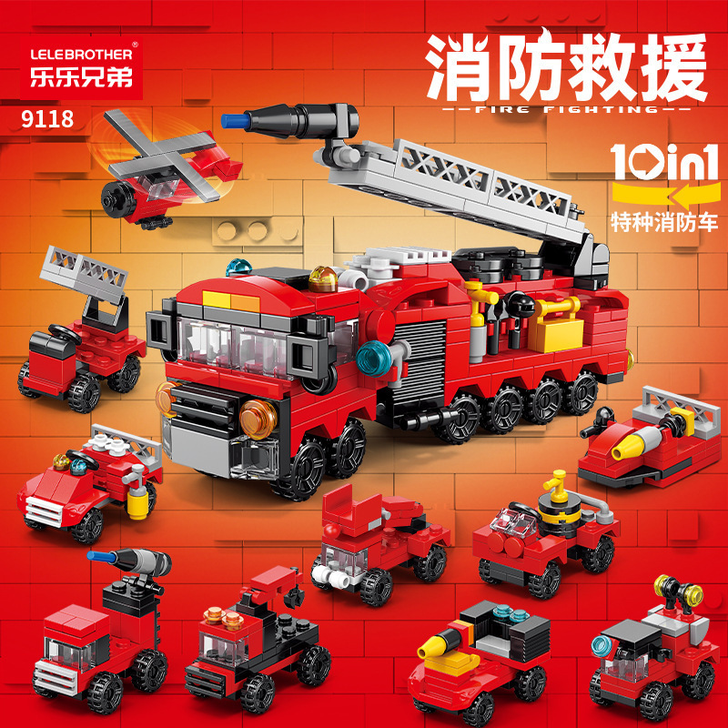 Lele Bros Blok Bangunan Anak-anak Teka-teki Model Rakitan Mobil Mainan Anak Laki-laki Truk Pemadam Kebakaran Rakitan Hadiah