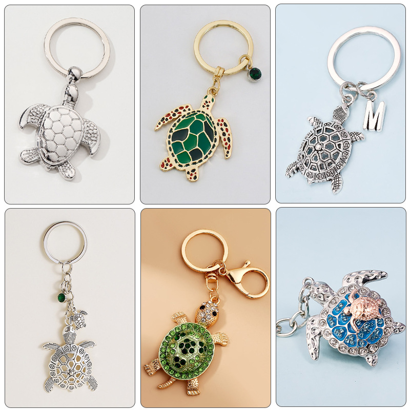 Liontin gantungan kunci mobil, gantungan kunci mobil binatang unik, gantungan kunci logam kura-kura indah kreatif