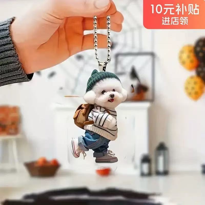 Tas Ransel Orang Anak Anjing Kecil Kreatif Produk Baru Lintas Batas Liontin Mobil Akilik Gantungan Kunci Anjing Teddy Imut