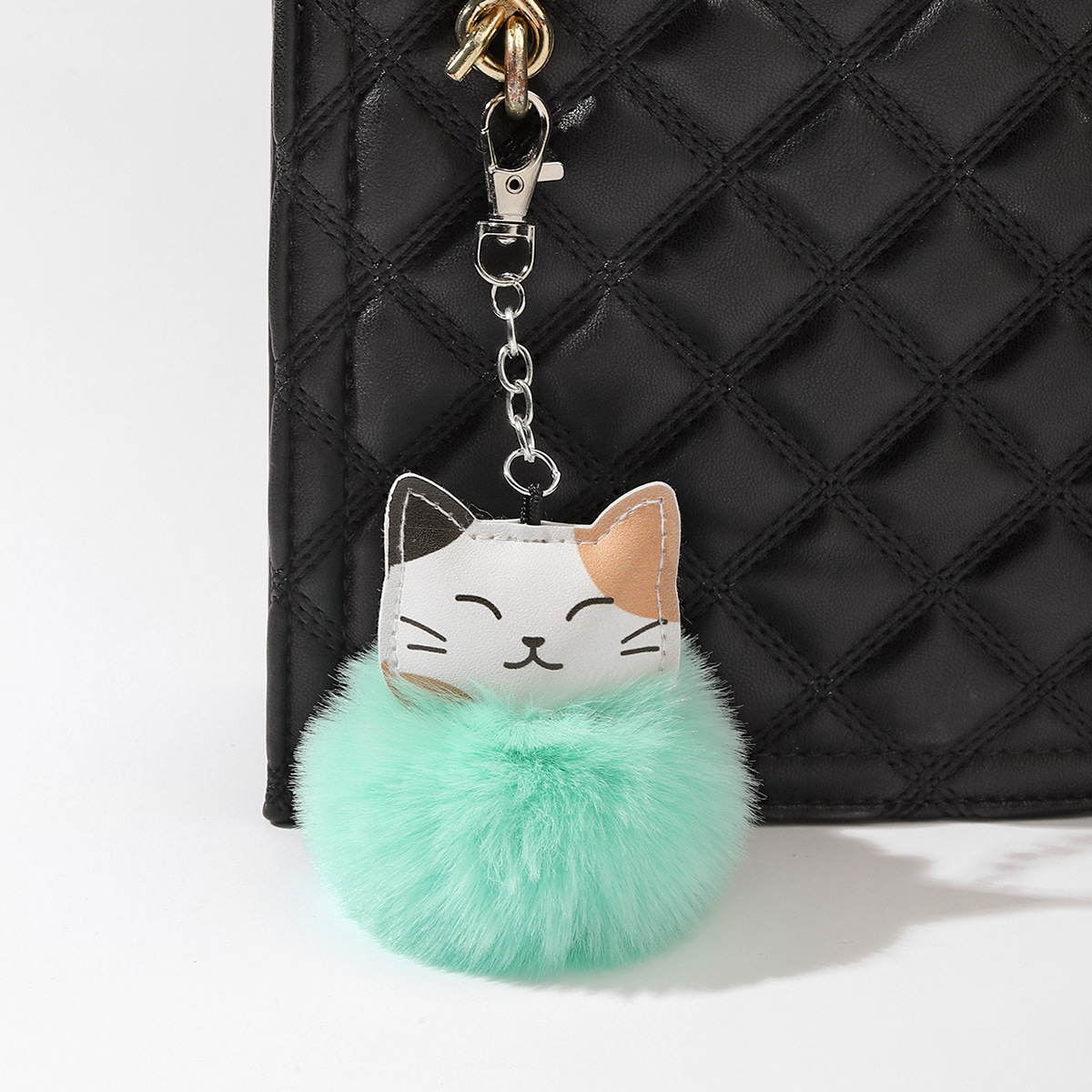 Tas wanita kartun bulu kelinci liontin gantungan kunci bola bulu kucing keberuntungan aksesori perhiasan bola bulu mobil