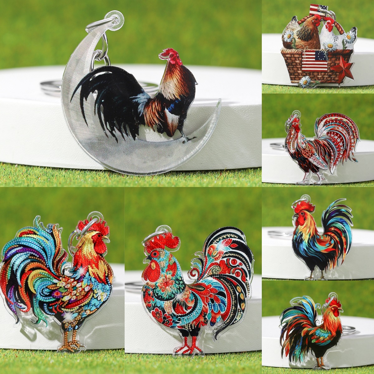 Cetakan warna akrilik Amerika gantungan kunci ayam peliharaan ornamen mobil pesta hadiah pria dan wanita