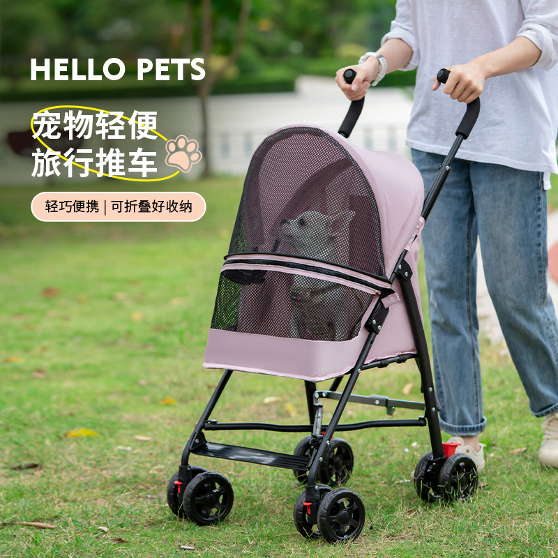 Kereta dorong hewan peliharaan lipat ringan yang laris di luar negeri, mudah dipasang, kereta dorong untuk jalan-jalan anjing, kereta dorong hewan peliharaan untuk anjing dan kucing kecil di luar ruangan