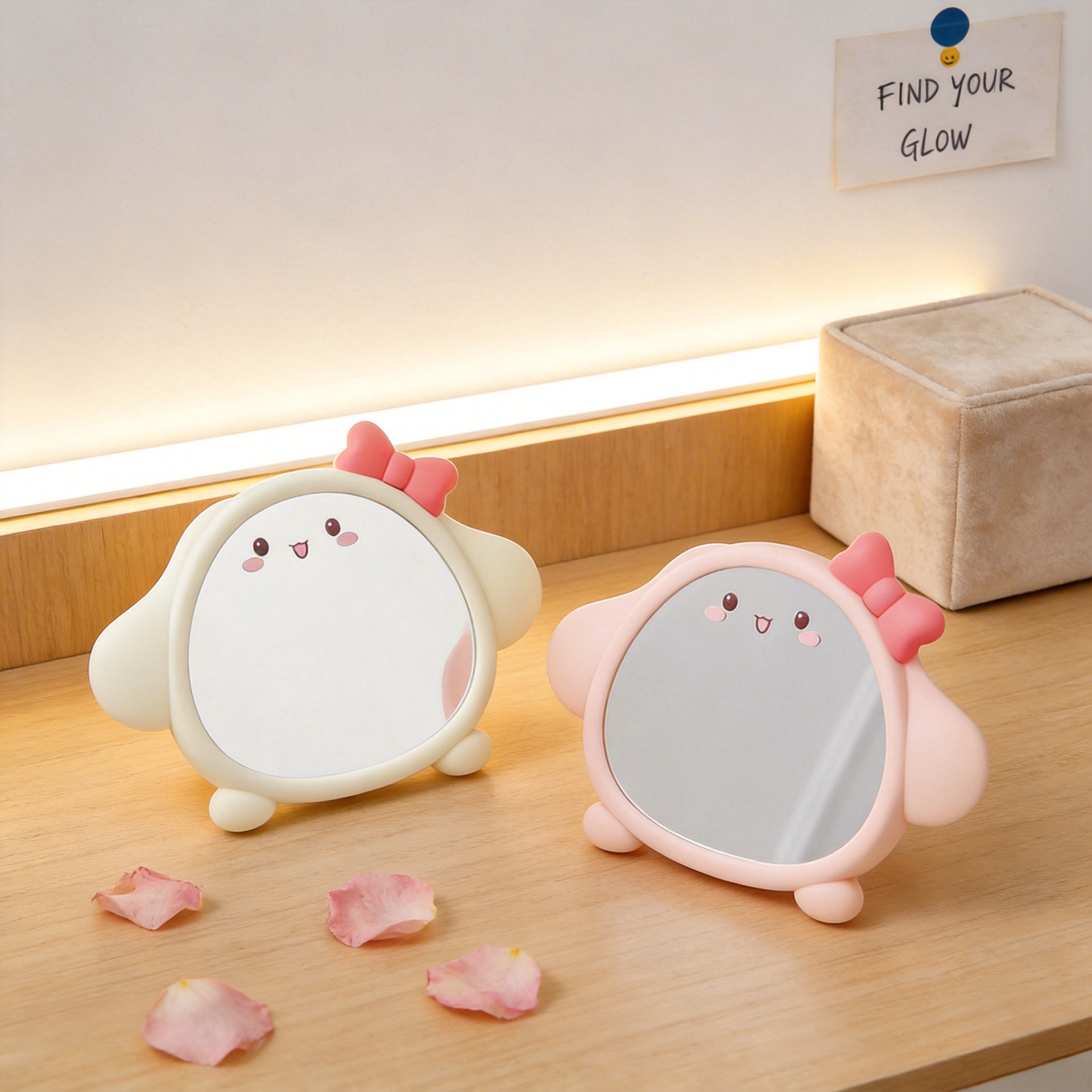 Cermin rias meja berbentuk anjing lucu dengan pita, cermin kartun baru bergaya kecantikan kartun, penjualan langsung cermin rias.