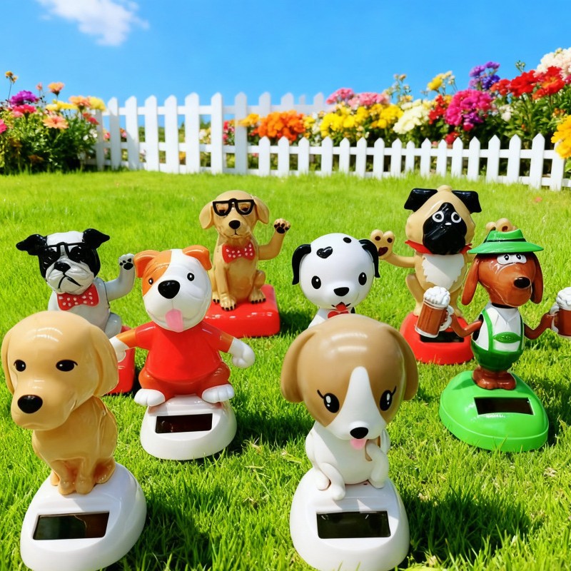 Boneka interior mobil, dekorasi interior resin dekorasi interior mobil tenaga surya anjing popcorn kepala bergoyang