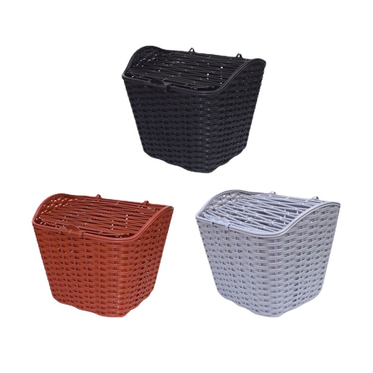 Keranjang anyaman rotan listrik sepeda keranjang plastik keranjang sayur hewan peliharaan dengan tutup keranjang sayuran