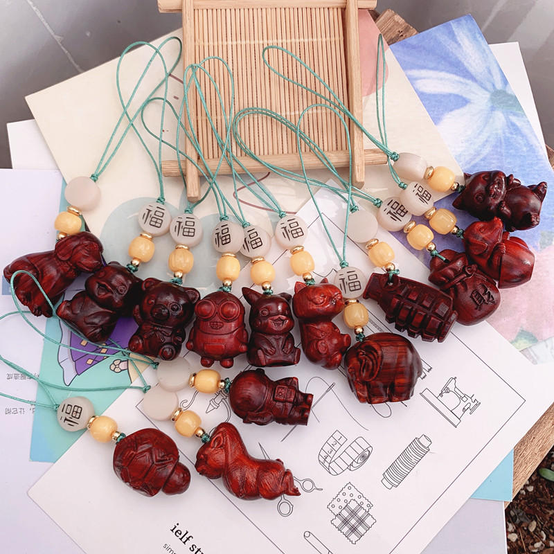 Rosewood Dompet gantungan kunci kayu cendana Tiger kelinci rantai ponsel gantungan mobil Rosewood liontin anak anjing Aksesori liontin