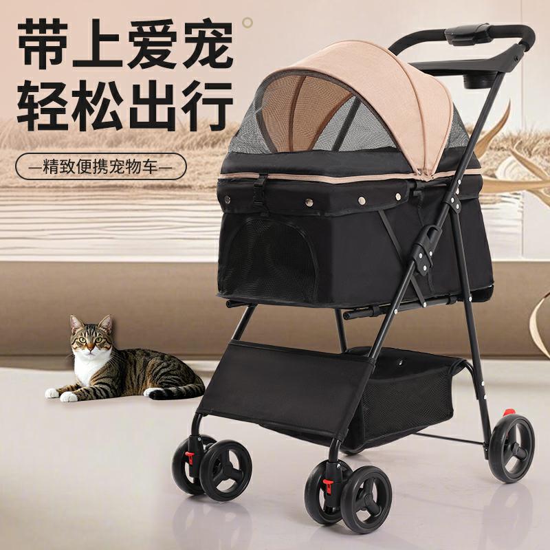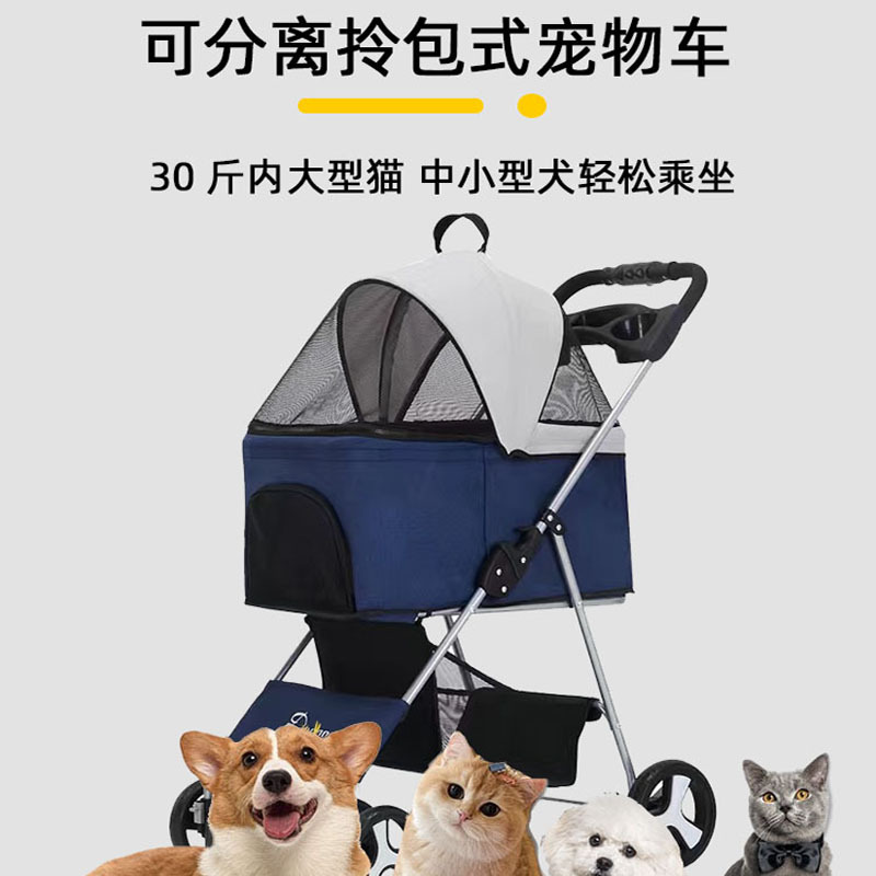 Kereta Dorong Hewan Peliharaan Anjing Kucing Dilipat Ringan Model Anjing Kecil dan Menengah Tas Hewan Peliharaan di Luar Perjalanan Berjalan Anjing Keranjang yang Dapat Dipisahkan