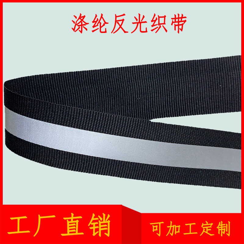 Pengolahan pabrik sabuk berkendara jas hujan aksesori pakaian Wansheng mainan pita strip reflektif sorot garis poliester kustom