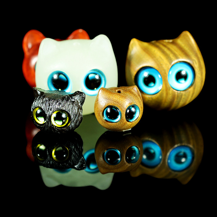 Hijau sandalwood Rosewood kucing batu bercahaya kucing DIY perhiasan Aksesori eboni gantungan kunci mobil tas gantung kerajinan hadiah