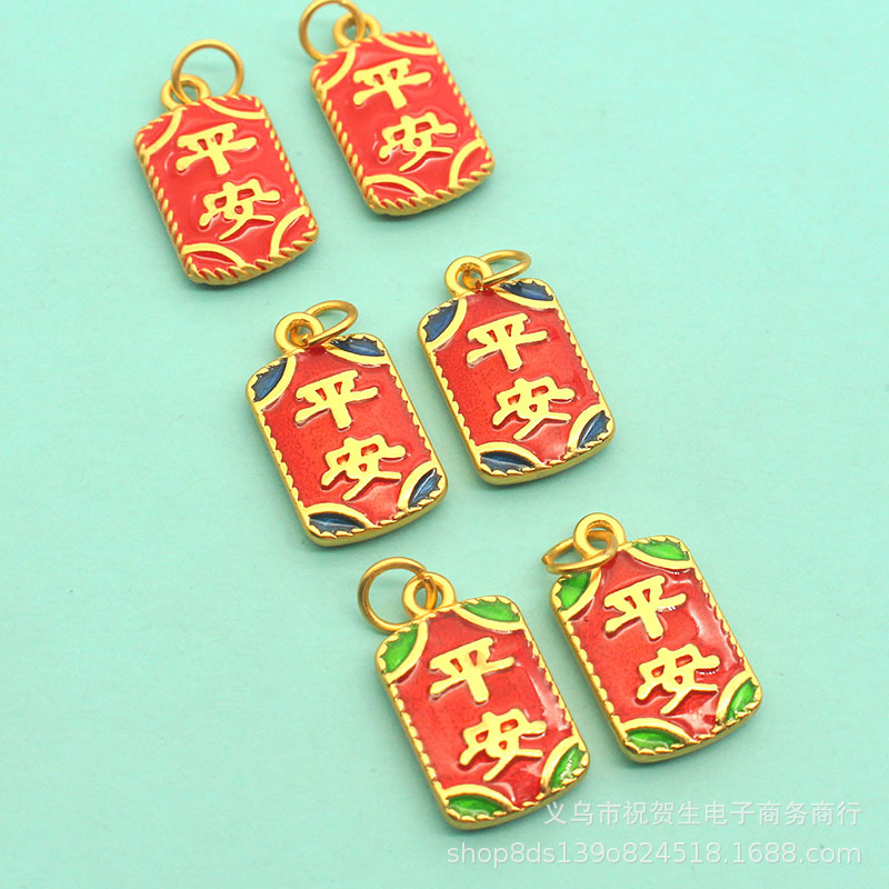 Perhiasan emas pasir menetes minyak dua sisi keselamatan gelang jimat tas telepon seluler gantung mobil liontin keamanan Tag liontin hewan peliharaan