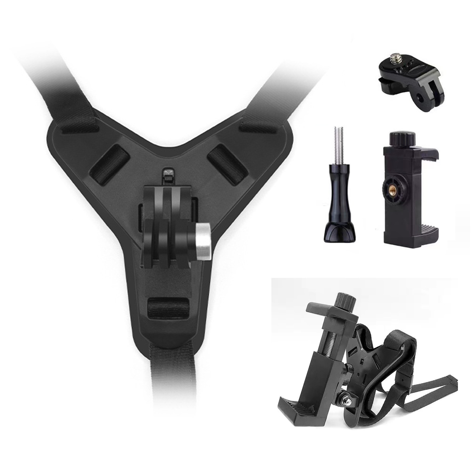 Gopro12/11/10/9/8 helm berkendara, aksesori anjing gunung Dajiang dudukan tetap braket dagu