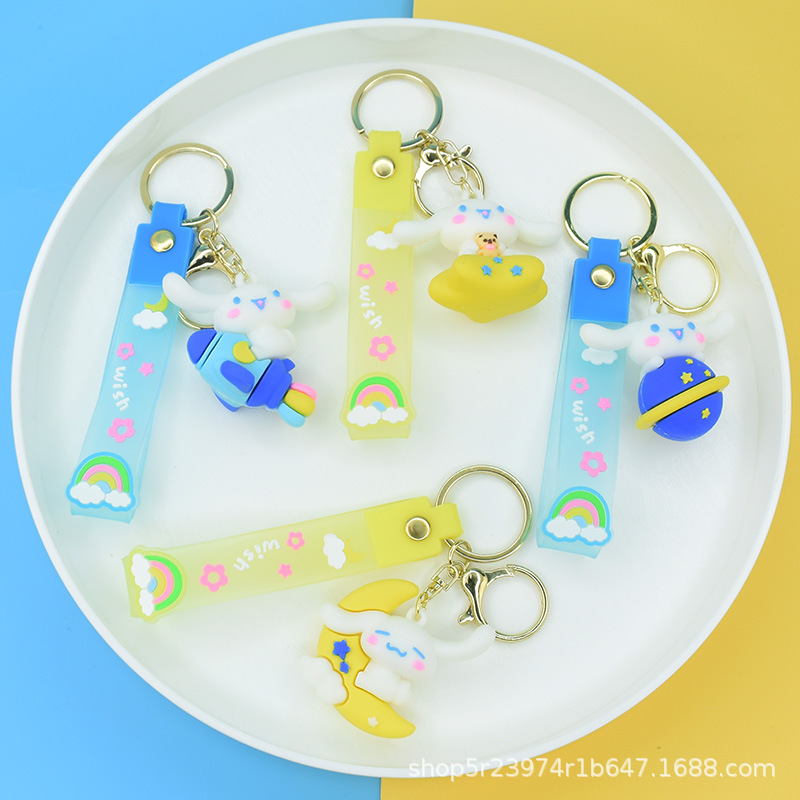 Gantungan Kunci Kartun Anak Anjing Garis Tas Sekolah Anak Lucu Gantungan Kunci Mobil Pasangan Hadiah Kecil Mesin Boneka