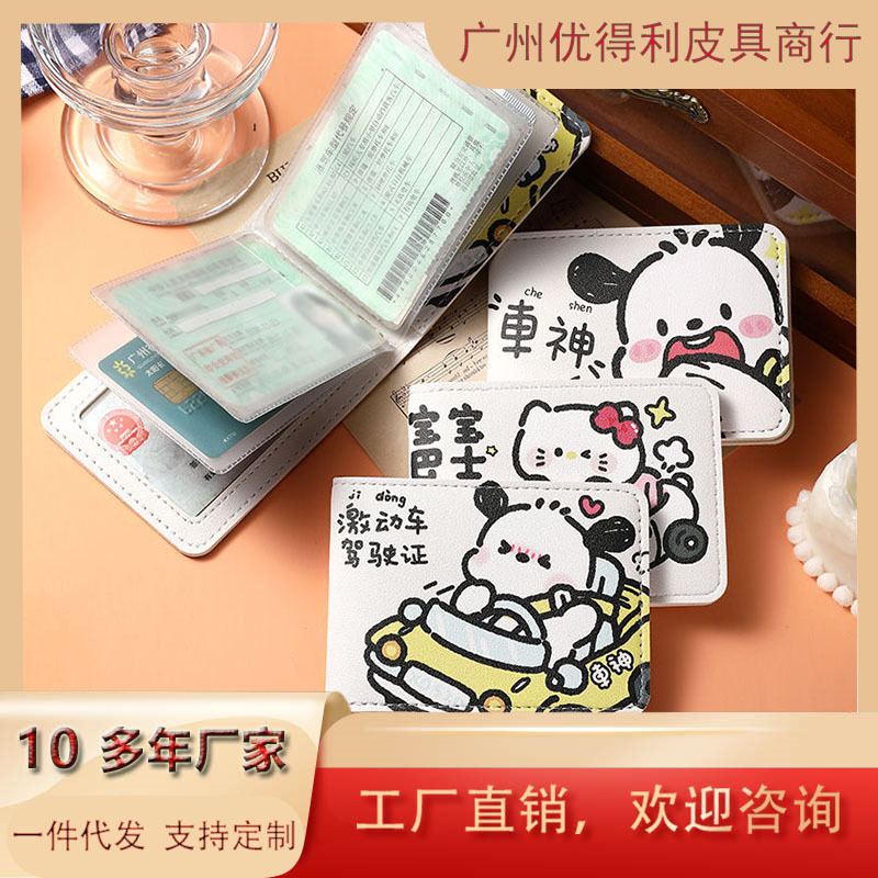 Sarung Kulit Surat Izin Mengemudi Kucing Mengemudi Sarung Perlindungan Surat Izin Mengemudi Kendaraan Bermotor Kreatif Berkarakter Wanita Anjing Kartun