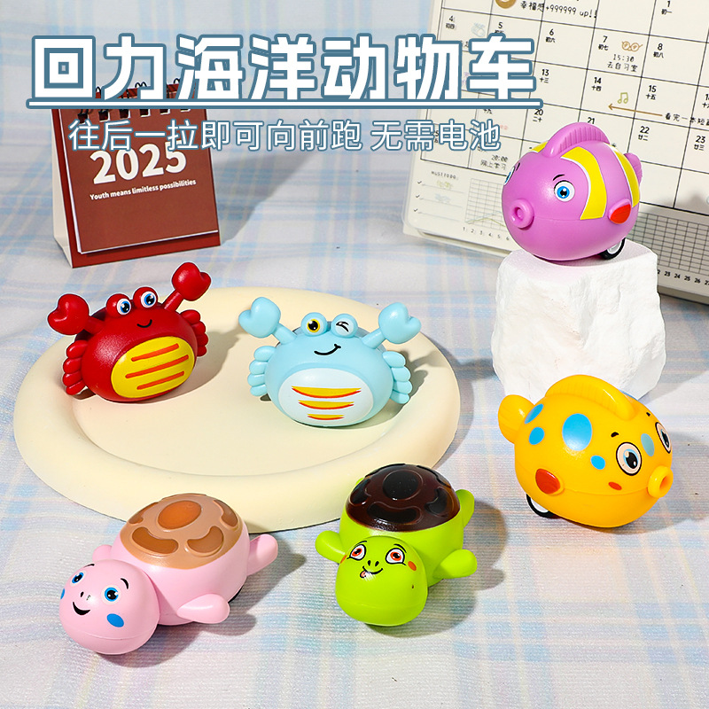 Anak-anak Kembali Troli Kepiting Kura-kura Lucu Kartun Laut Hewan Kembali Mobil TK Mainan Bayi Grosir