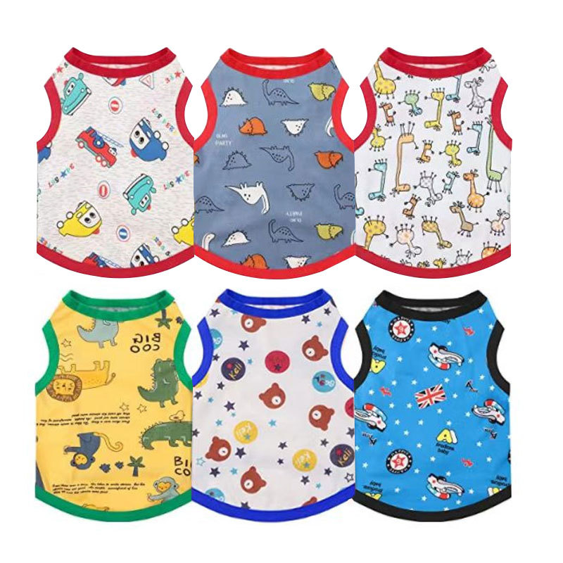 Disesuaikan grosir musim gugur dan musim dingin anjing rompi hewan peliharaan dicetak kartun pakaian anjing kucing anak anjing kecil rok hewan peliharaan