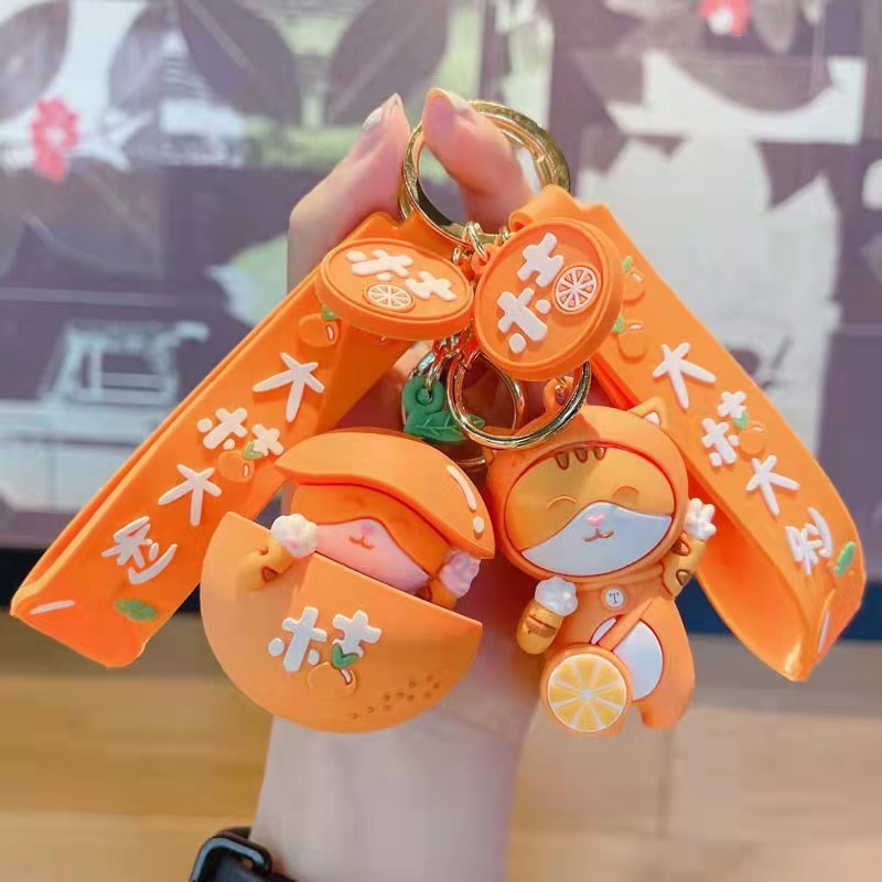 Lucky orange ornamen mobil ransel pasangan, Gantungan Kunci kucing liontin kartun lucu sederhana
