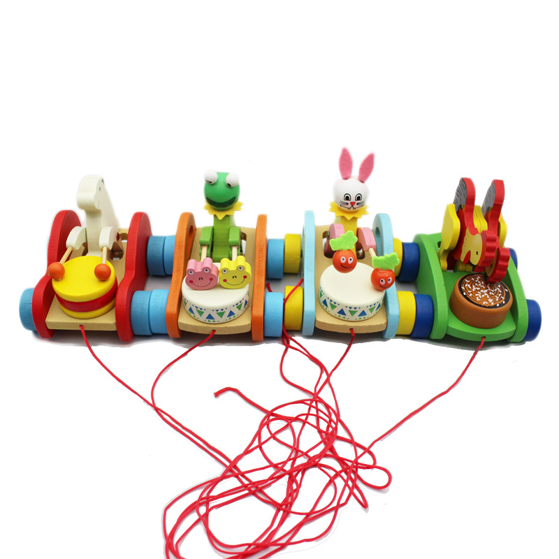 Mobil mainan drum beruang kartun bayi, mobil tarik kelinci putih kecil, mainan troli beruang kartun untuk anak-anak