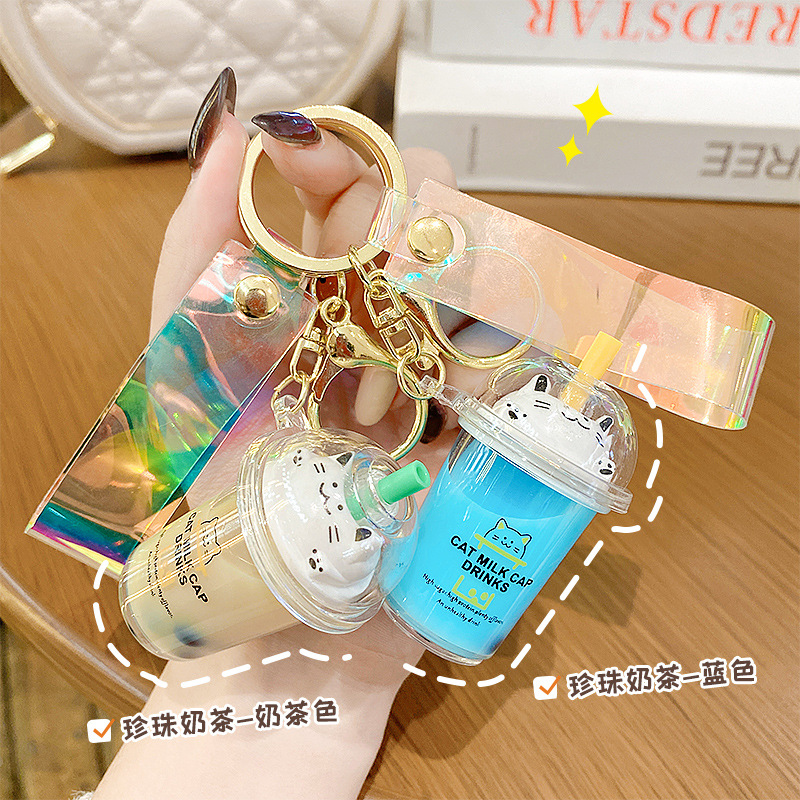 Gantungan kunci mobil, kreatif lucu pria dan wanita dipersonalisasi, mobil kucing teh susu gantungan kunci ins pasangan selebriti online kartun liontin segar