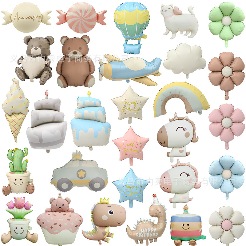Balon pesawat matte baru, film aluminium beruang buram bentuk mobil polisi pelangi, balon dekorasi ulang tahun anak-anak