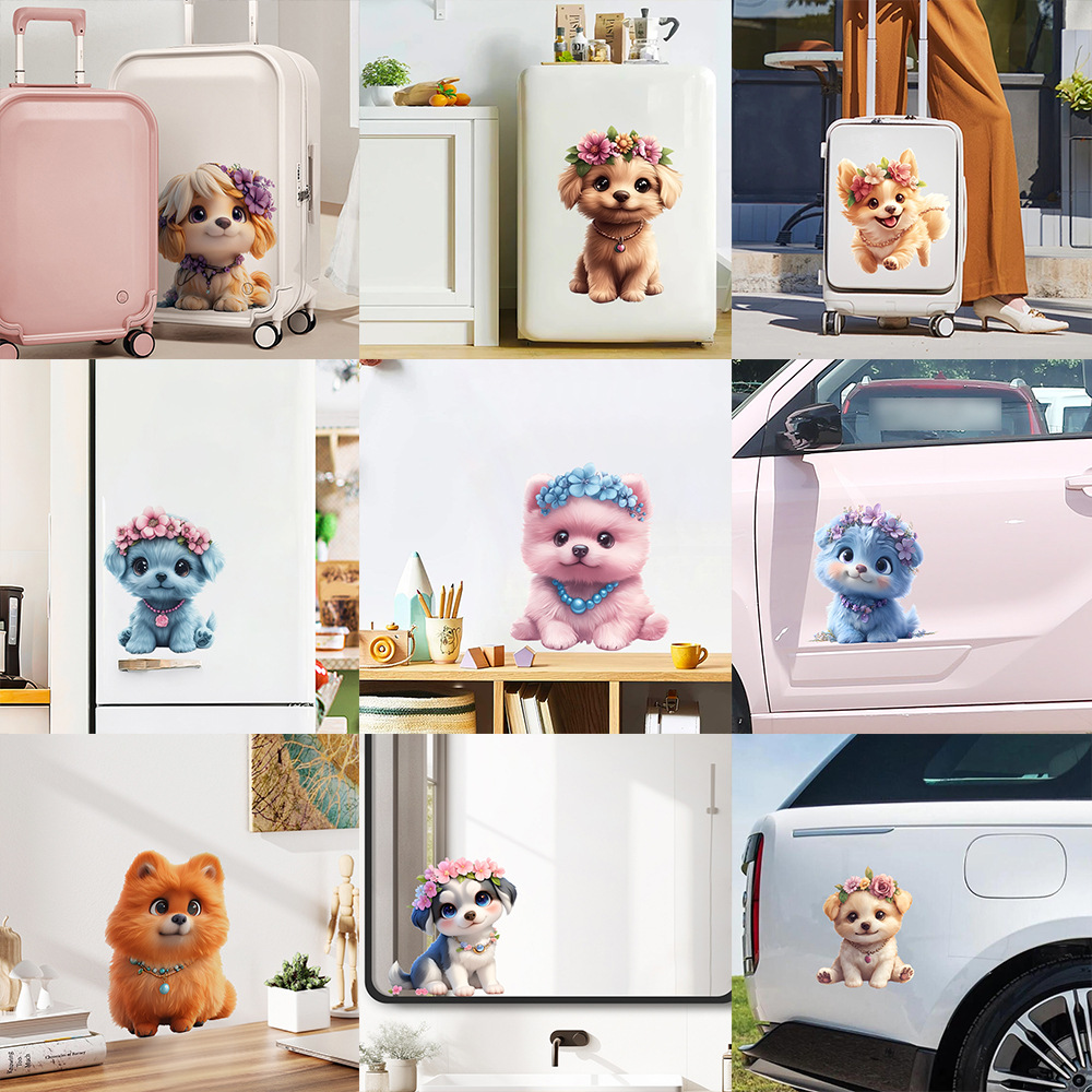 Kunshangpin Stiker Dinding Tempelan Sendiri Tempelan Film Putih Anjing Lucu Model Baru Stiker Mobil Stiker Hiasan Pintu Lemari Jendela Kaca