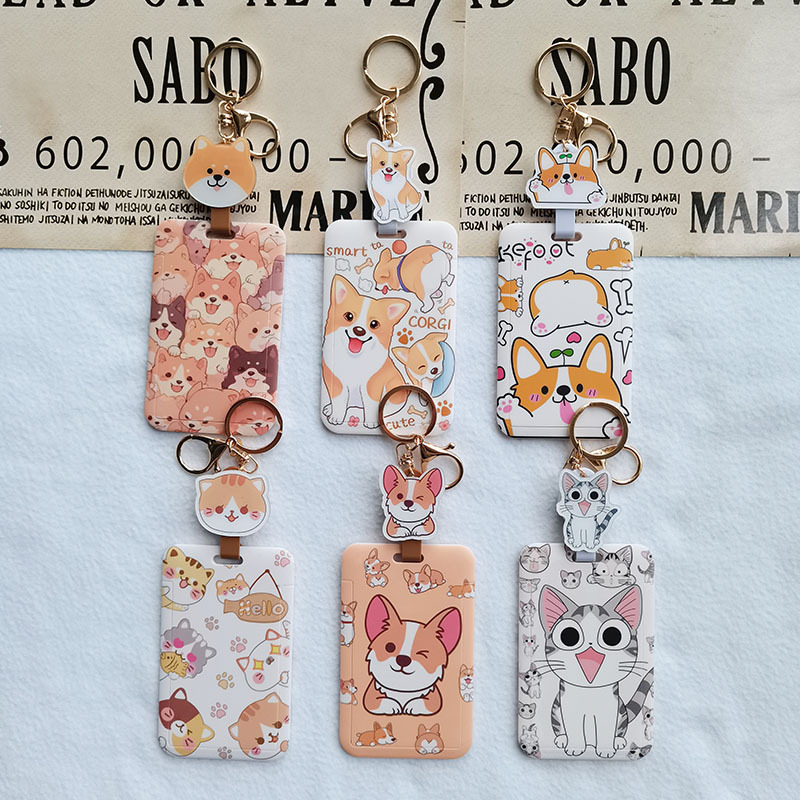 Kartun kucing kucing anjing anak kucing Shiba Inu mudah tarik gesper kartu ID kartu siswa bus kereta bawah tanah penutup sertifikat kerja ransel liontin