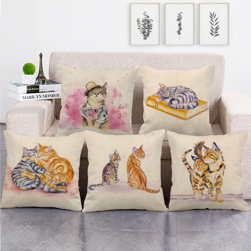 Kucing dicat hewan peliharaan lucu sarung bantal linen bantal bantal lintas batas pasokan platform pabrik penjualan langsung 1433