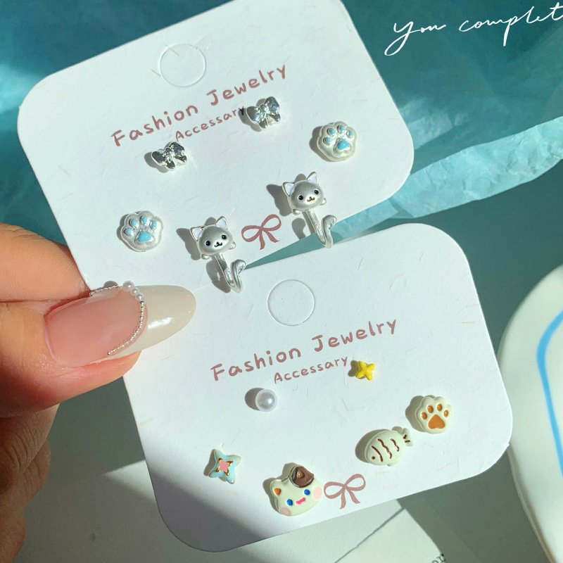 Koleksi Set Anting Hewan Lucu Kreatif Kartun Jarum Perak Wanita Kucing Lucu Aksesori Anting Siswa Desain Unik