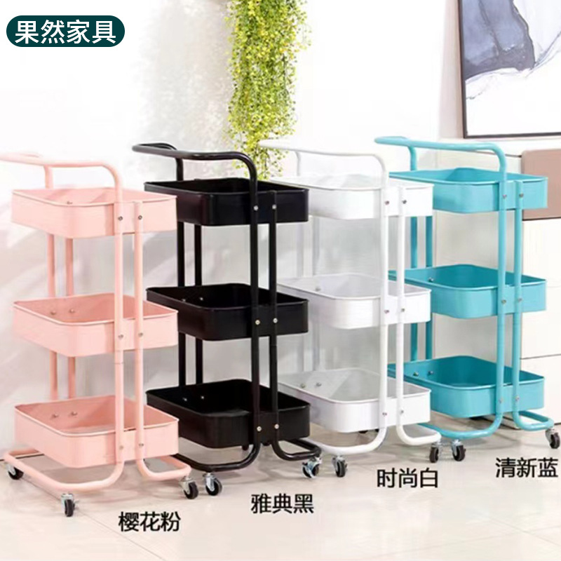 Rak penyimpan celah dapur dan kamar mandi, rak penyimpanan kosmetik makanan ringan dengan sandaran tangan, rak penyimpanan troli besi