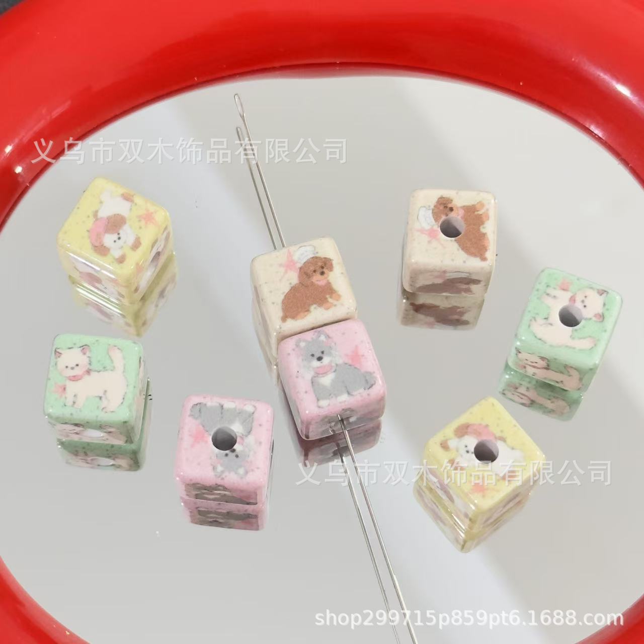 Gelang Gantung Mobil DIY Manik-Manik Kotak Kucing Anak Anjing Bercorak 14mm Gelang Ponsel Aksesori Rambut Tali Kepala Aksesori Rambut