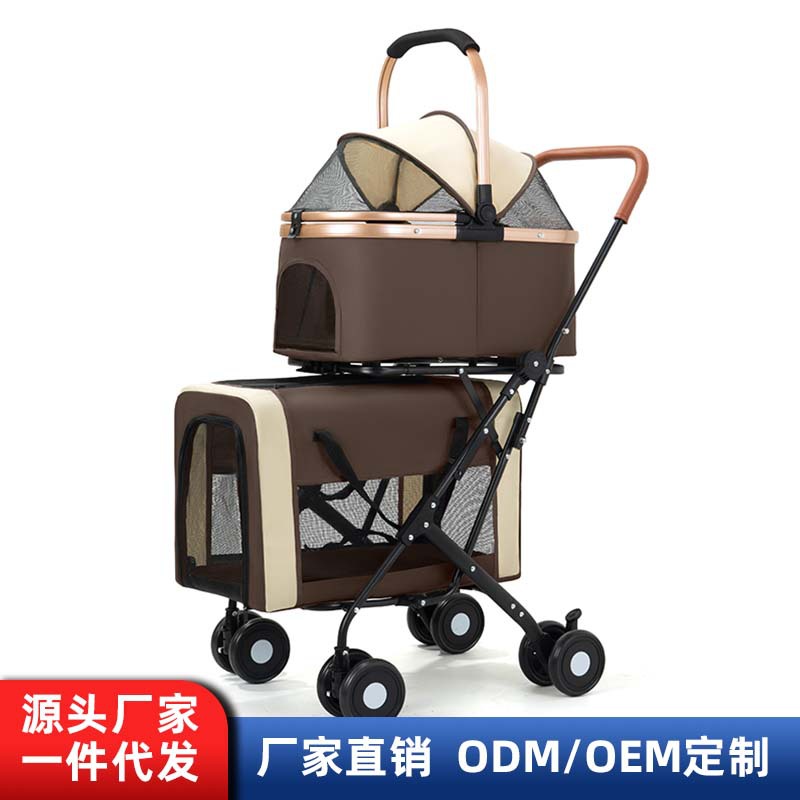 Kereta dorong hewan peliharaan gratis ongkir untuk anjing dan kucing, kereta dorong hewan peliharaan Teddy dengan peredam kejut, dapat dilipat untuk perjalanan luar ruangan, laris manis di luar negeri