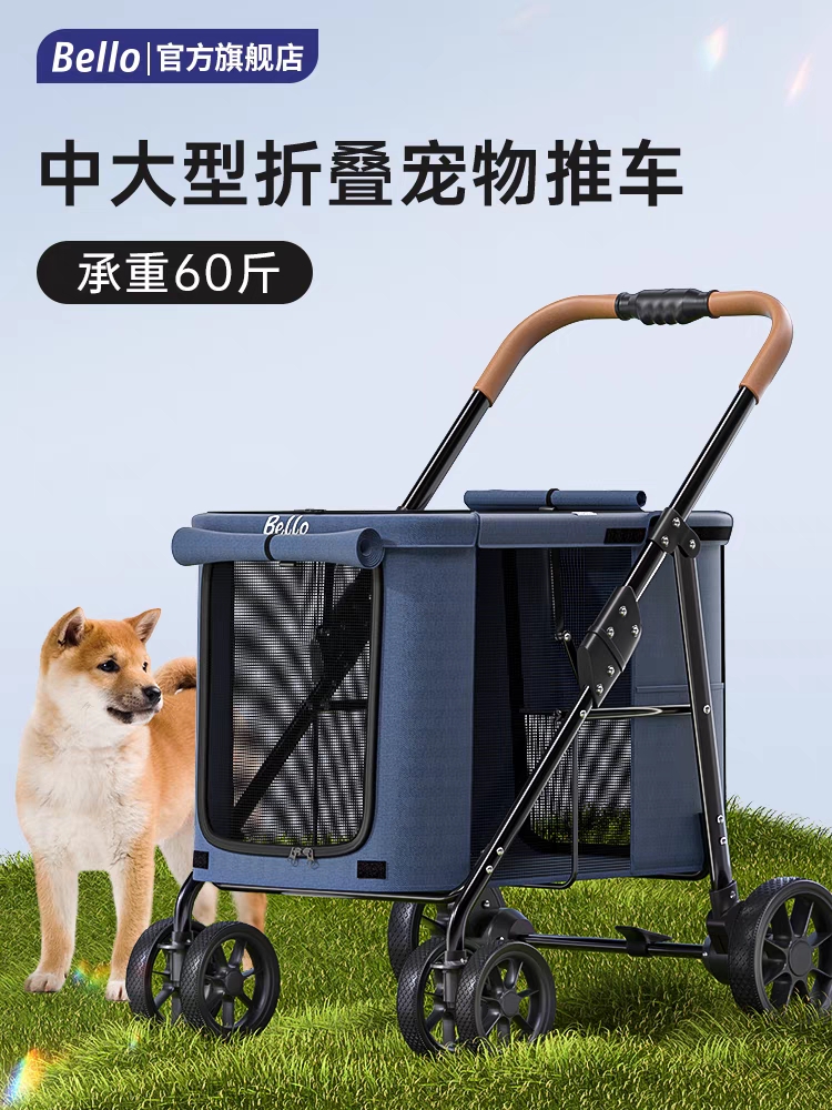 Bello Kereta Dorong Hewan Peliharaan Model Baru Ruang Besar Kereta Dorong Hewan Peliharaan Anjing Kucing Keluar Kereta Dorong Kucing Anjing Lipat Terpisah