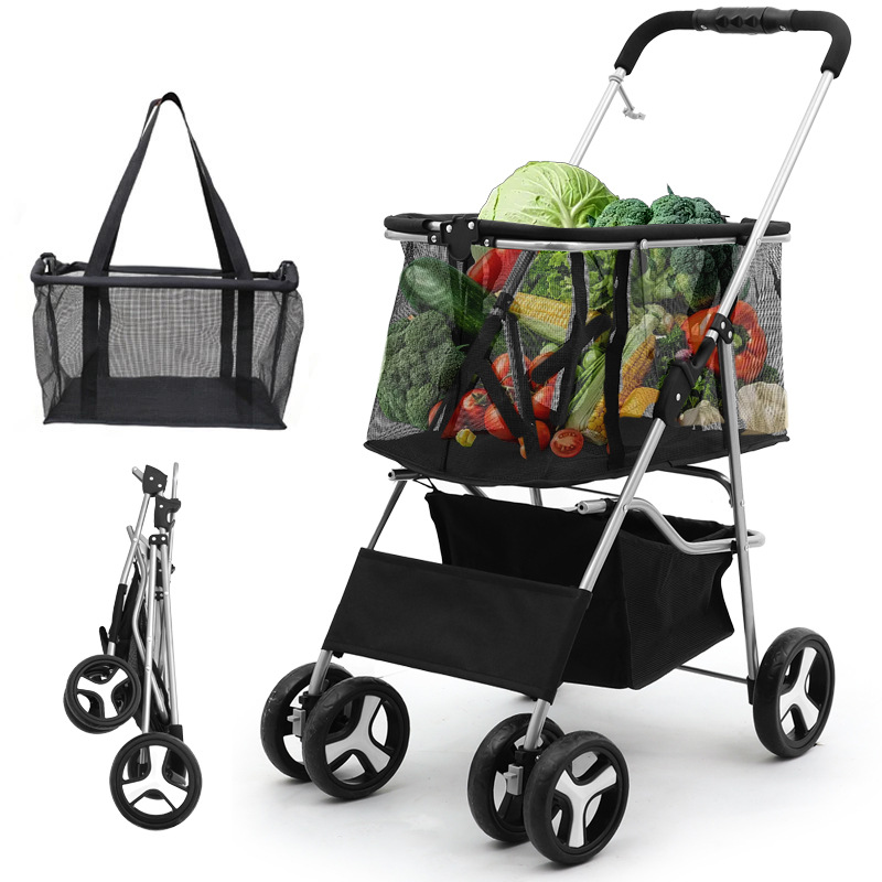 Troli Hewan Peliharaan Bisa Dilipat Model Baru Troli Kucing dan Anjing Berbelanja Dua Penggunaan Mobil Piknik Berkemah Mobil Hewan Peliharaan Supermarket