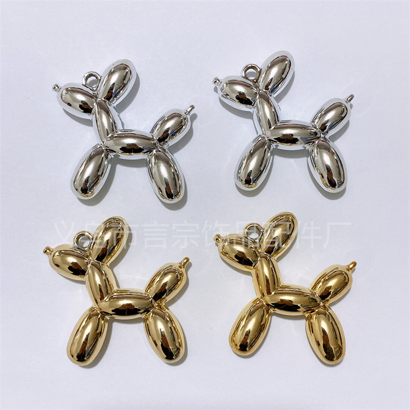 Liontin anjing balon emas perak akrilik, Gantungan Kunci DIY TikTok, tali ponsel, aksesori gantung mobil