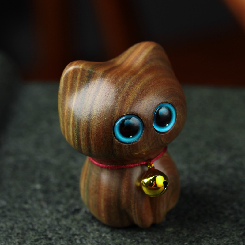 Kayu Cendana Ukir Kucing Kayu Solid Hewan Genggam Kartun Mobil Rumah Lucu Kucing Kecil Ornamen Kucing Kayu
