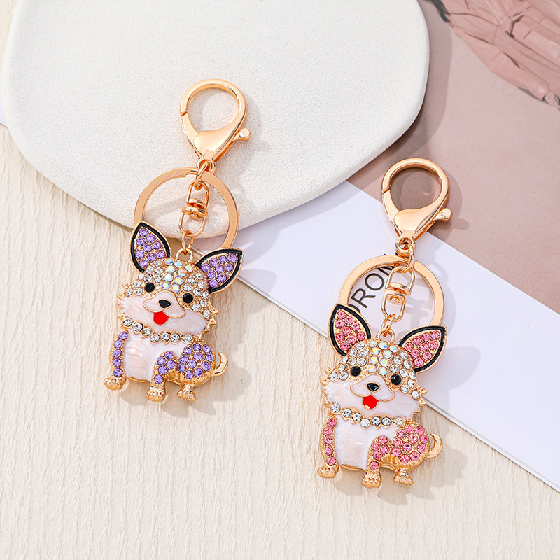 Gantungan Kunci Logam untuk Anak Anjing Hewan Anak Anjing Model Baru Trendi Bertatahan Berlian Model Baru