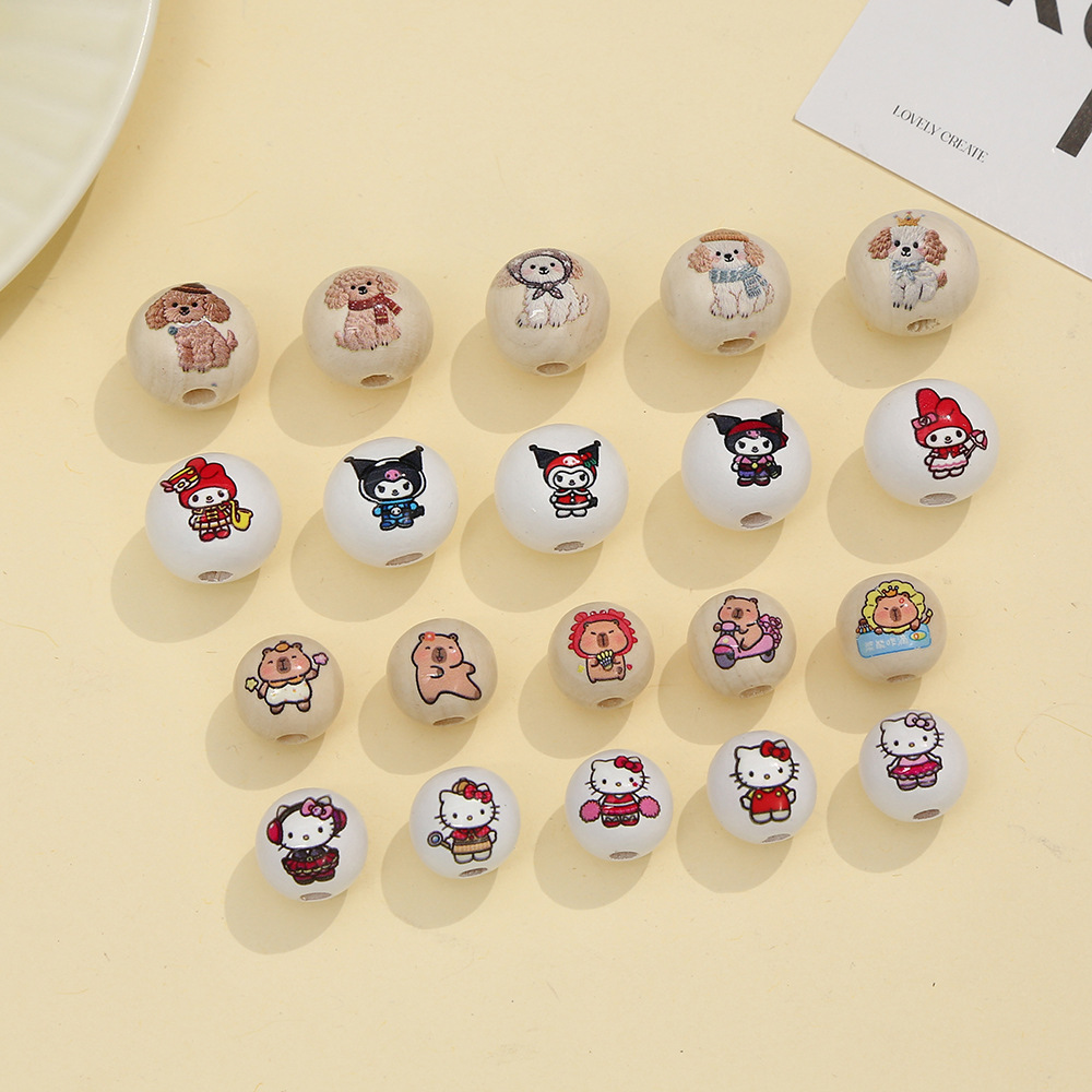 Gelang Gelang Diy Manik-Manik Manik Manik-Manik Kartun Kucing Capybara Kartun 20mm Aksesori Perhiasan Manik-Manik Bulat Kayu Rumput Dekorasi Festival