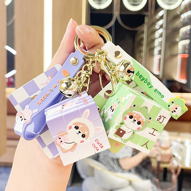 Shiba kecil asli gantungan kunci kubus Inu liontin mini tingkat ketiga dekompresi puzzle Mobil tas pasangan ornamen mobil