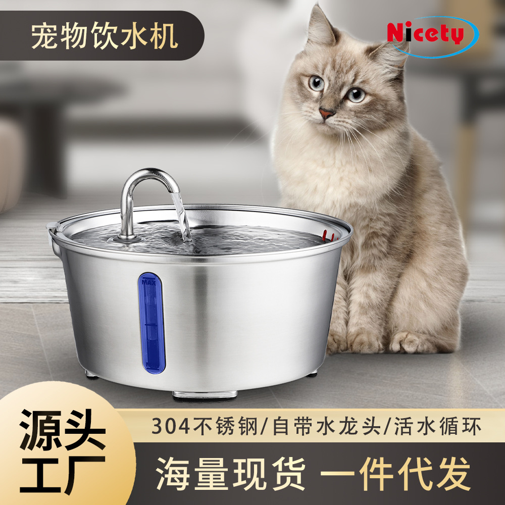 Cross-border dispenser air hewan peliharaan besi tahan karat 304 baru dispenser air kucing induksi otomatis pemberi makan air anjing