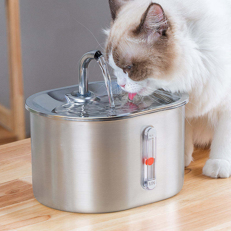 Dispenser air elektrik baja tahan karat untuk hewan, dispenser air minum kucing otomatis cerdas, dispenser air anjing untuk hewan peliharaan 304