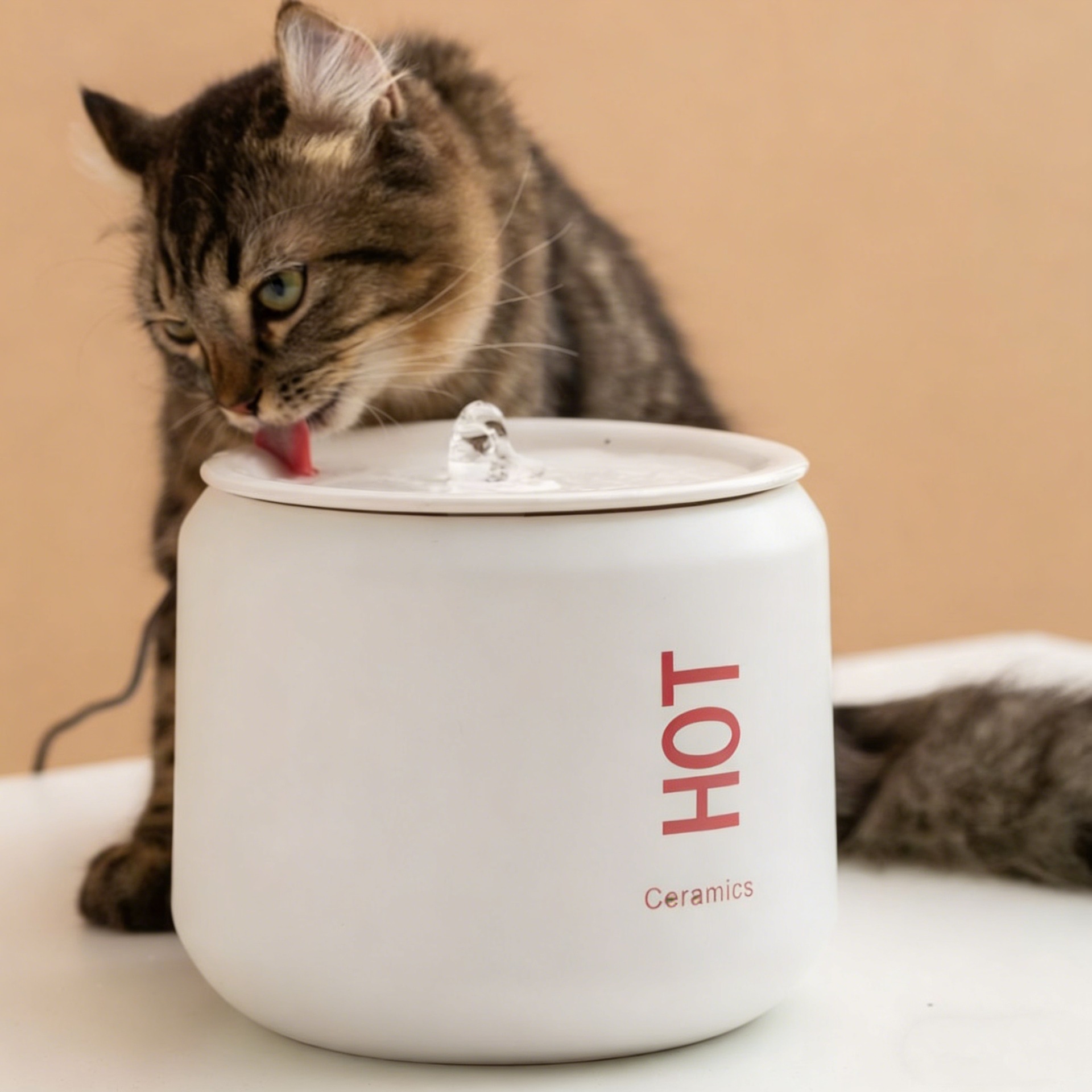 Meow Xingjia dispenser air otomatis hewan, dispenser air kucing keramik otomatis, air mengalir suhu konstan, dispenser air tanpa kabel