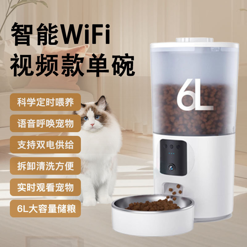 WiFi Lintas Batas Hewan Peliharaan Pengumpan Otomatis Kamera 6L Kapasitas Tidak Ada Makanan Jarak Jauh Waktu 5G Pengumpan Kucing Cerdas