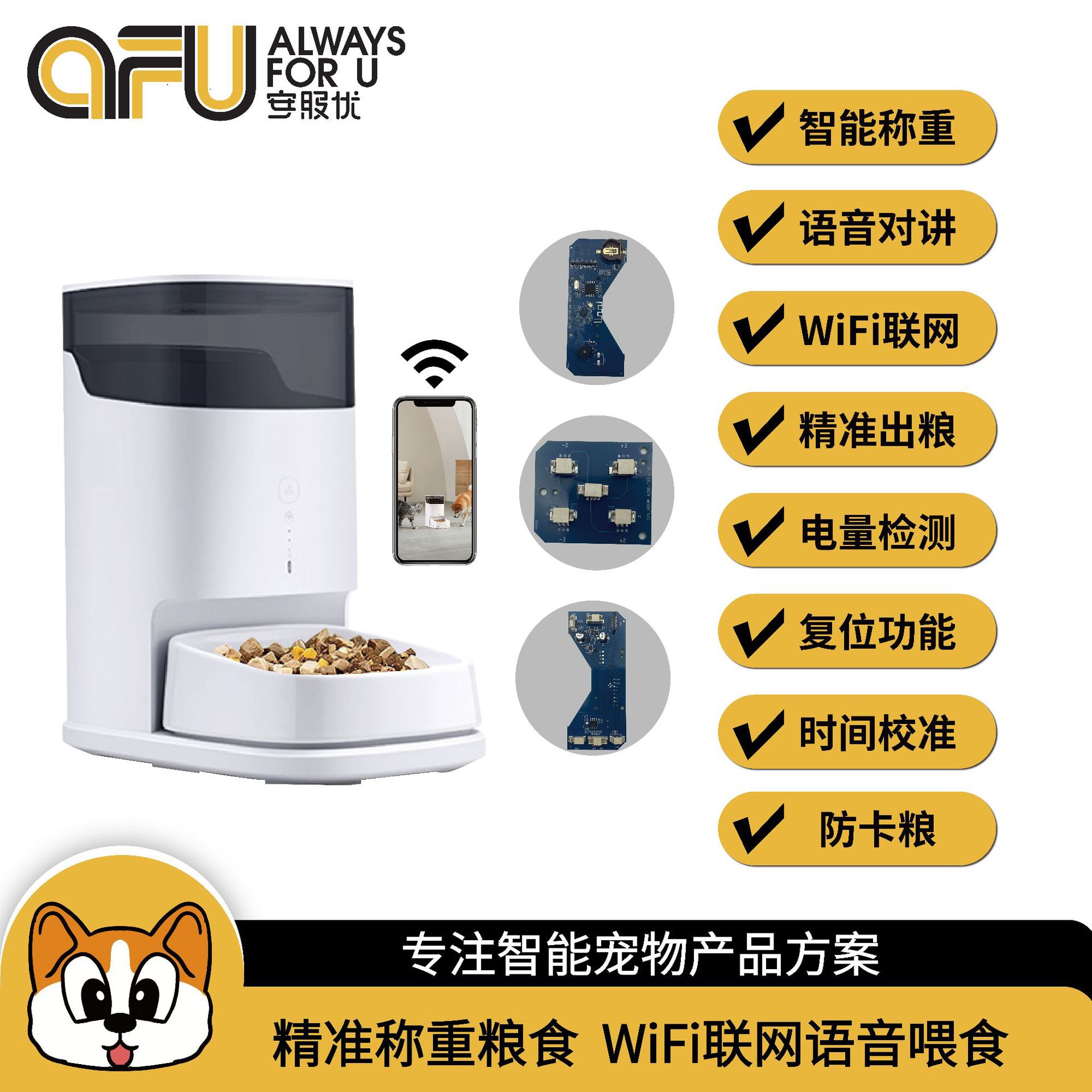 Timbangan pengumpan mainboard pengembangan cerdas pet otomatis feeder PCBA solusi self-built pengembangan suara