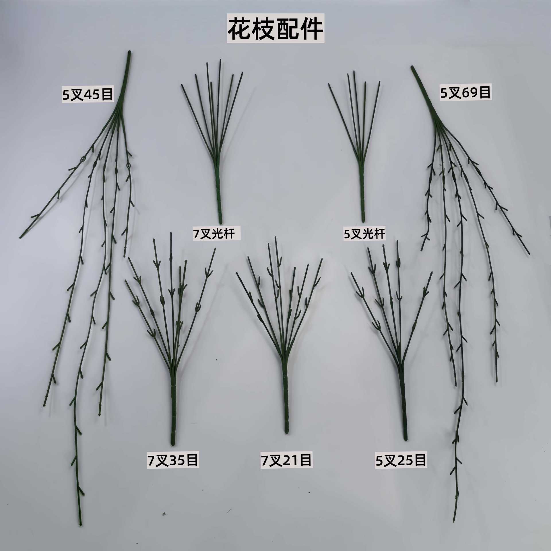 Pabrik Penjualan Langsung Aksesoris Tanaman Bunga Imitasi Plastik dengan Kawat Besi Bunga Batang Bunga Ornamen Bunga 7 Garpu 35 Mata