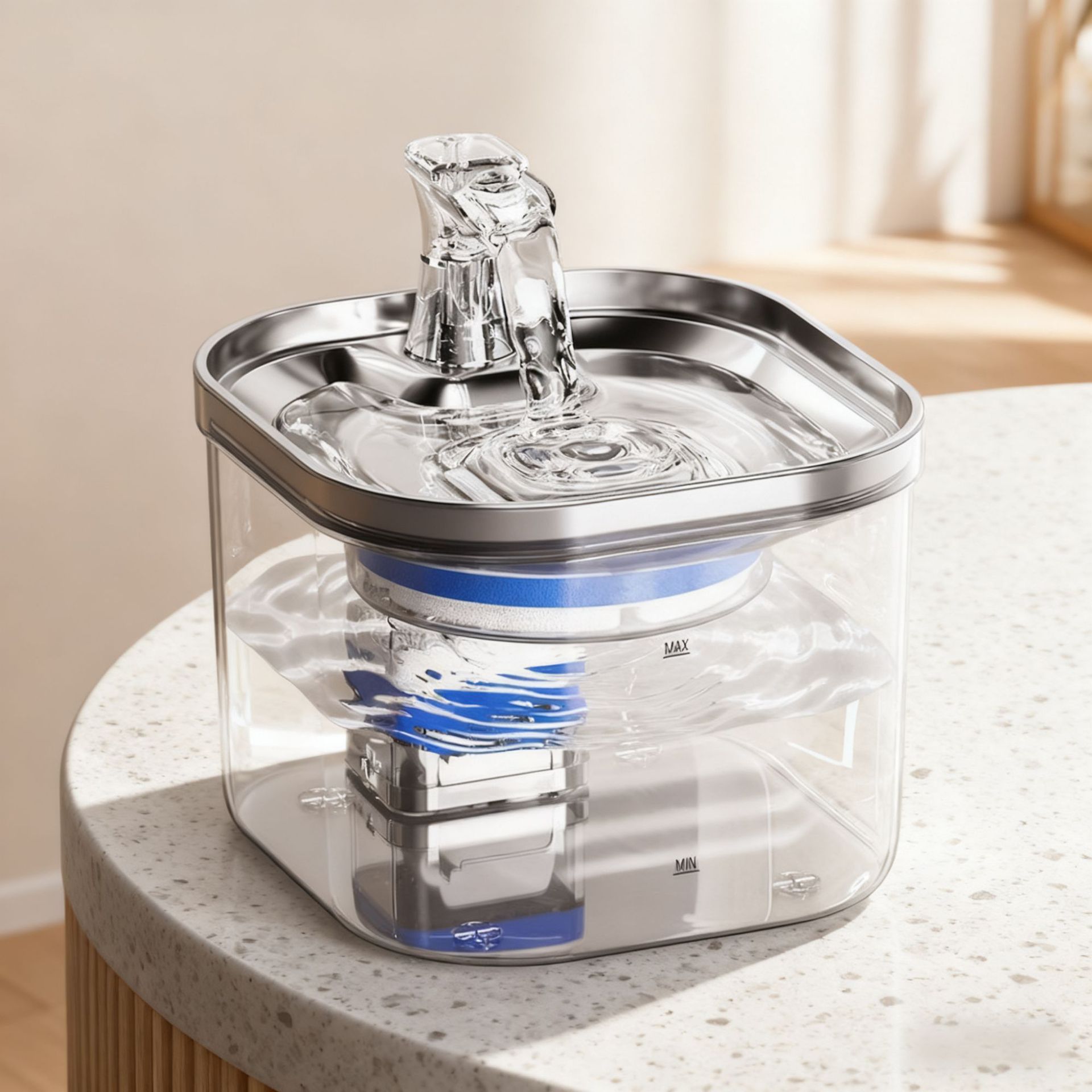 Dispenser air minum hewan peliharaan baru dari baja tahan karat dengan jendela transparan, dispenser air otomatis untuk kucing, air mengalir sirkulasi, perlengkapan kucing pintar.