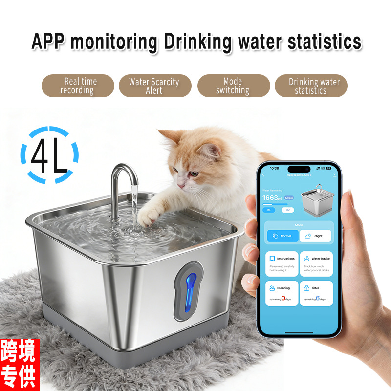 Ponsel Lintas Batas Memantau Dispenser Air Hewan Peliharaan Cerdas Peminum Air Otomatis Kucing Pengumpan Air Anjing Stainless Steel Bersihkan Kotoran