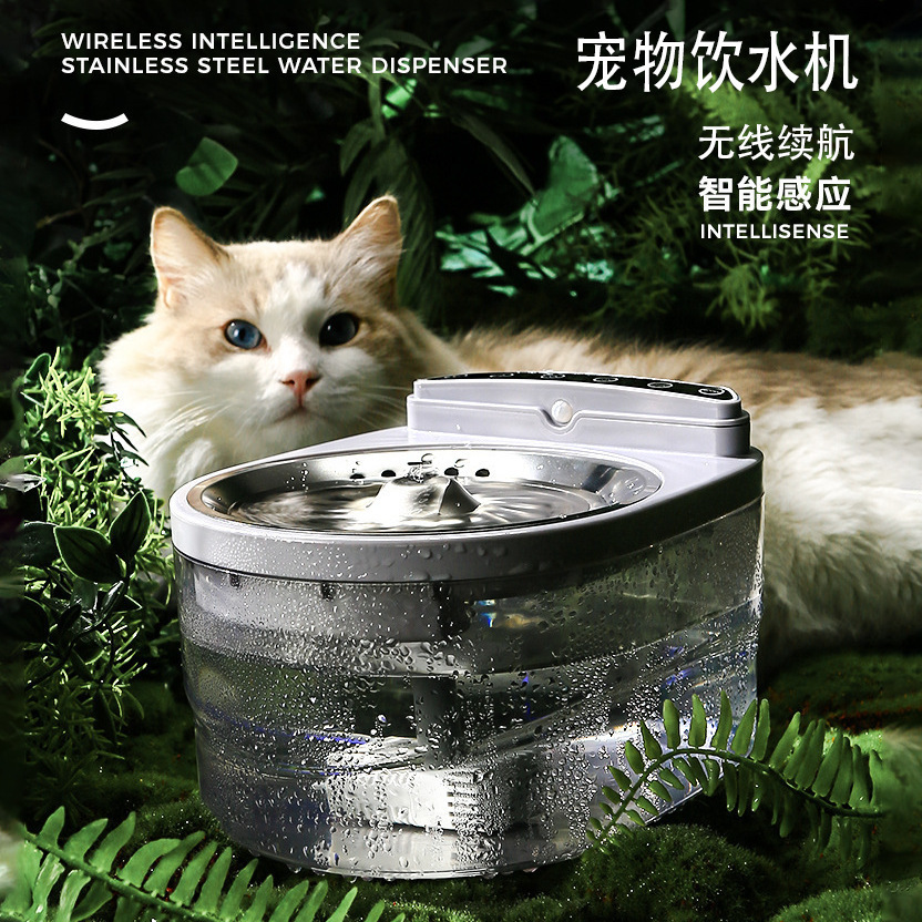 Dispenser air stainless steel pintar kucing dispenser air bisu nirkabel yang dapat diisi ulang alat minum air hidup