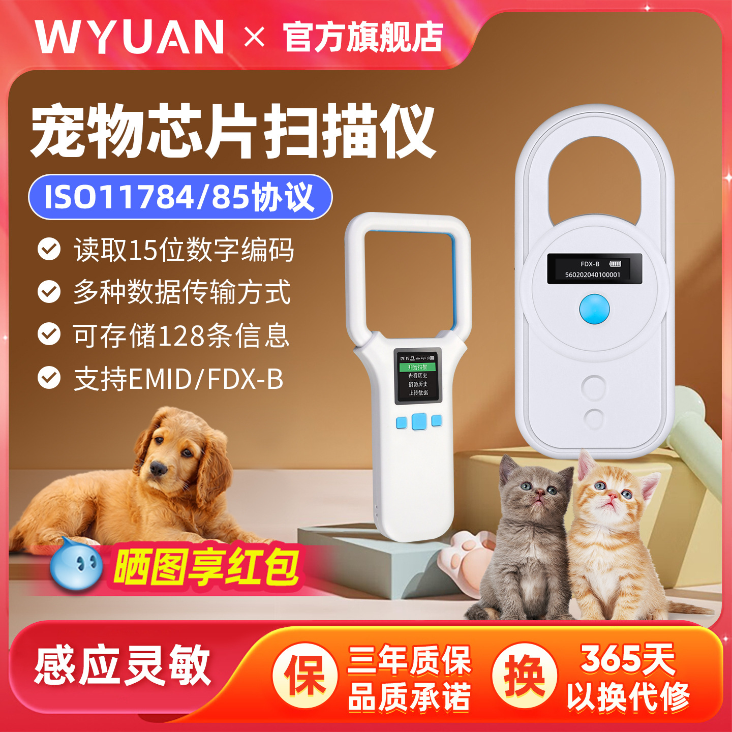 Pemindai kartu chip hewan peliharaan CKU/NGKC/CSV anjing pembaca kartu tag hewan 125/134. Pemindai 2K