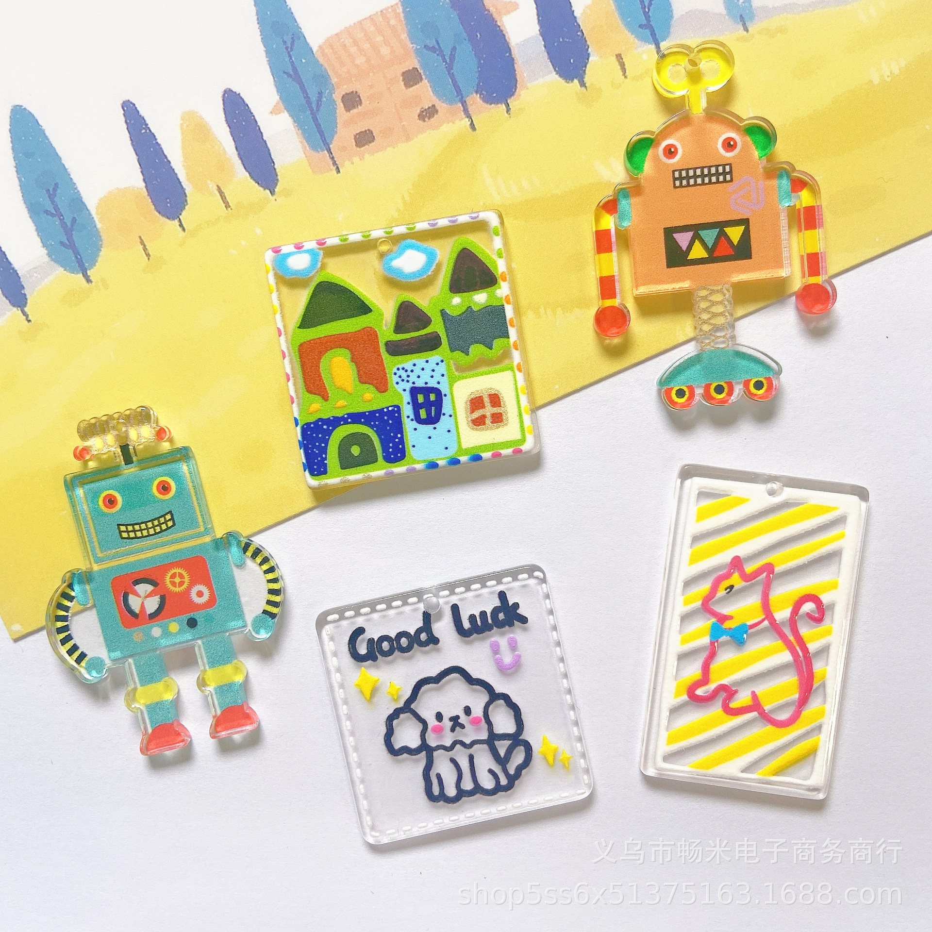 Robot anjing kartun akrilik potongan anting liontin ponsel rantai aksesoris gantungan kunci Aksesori dengan lubang diy buatan tangan