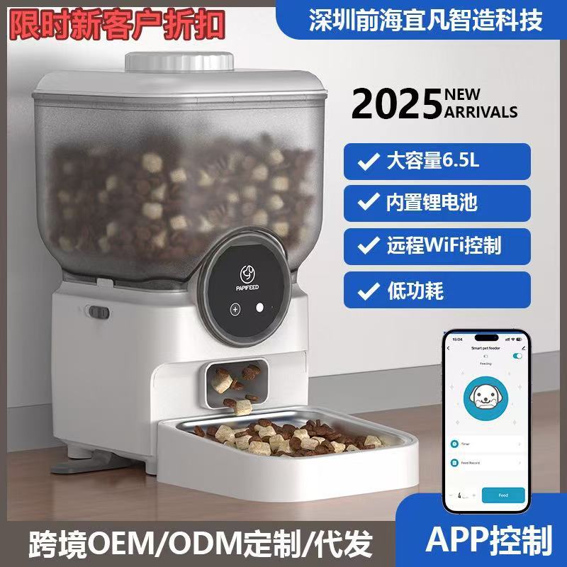 Aplikasi pintar lintas batas Amazon untuk mengontrol pengumpan hewan peliharaan secara otomatis keluar dari makanan untuk memberi makan kucing sudut lebar yang terlihat