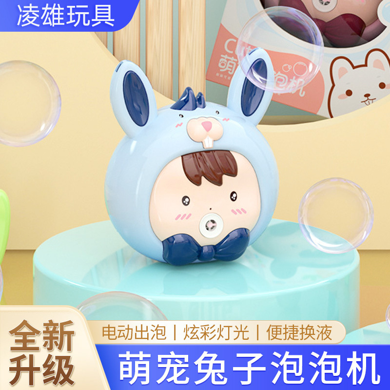 Douyin mesin gelembung kelinci peliharaan lucu populer lampu musik otomatis kartun elektrik mainan anak-anak gelembung meniup
